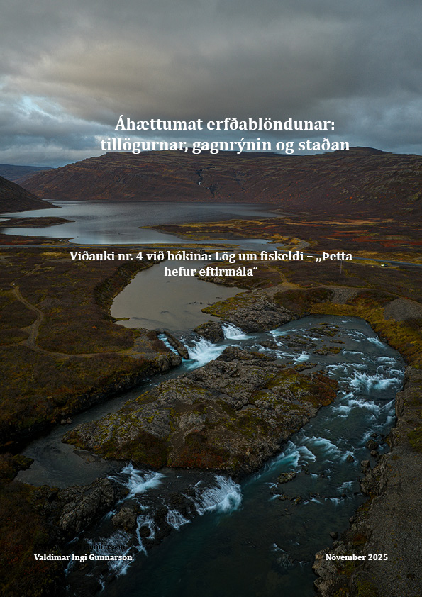 Efni: Áhættumat erfðablöndunar byggir á líkani þar sem erfðablöndun hefur í raun verið  innbyggð. Það hefur verið notað fyrst og fremst til að úthluta framleiðsluheimildum til laxeldisfyrirtækja í meirihlutaeigu erlendra aðila til sjókvíaeldi á frjóum norskum eldislaxi í íslenskum fjörðum.